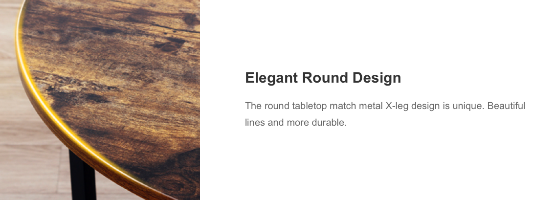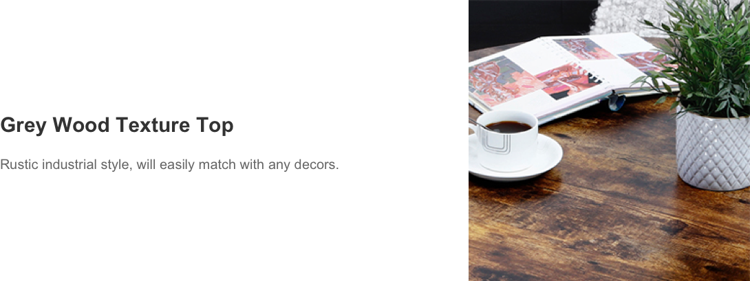 The simplistic rustic wood grain veneer and industrial metal frame gives the table an elegant classical vintage style creating a warm feeling. It’s easy to pair with other furniture.